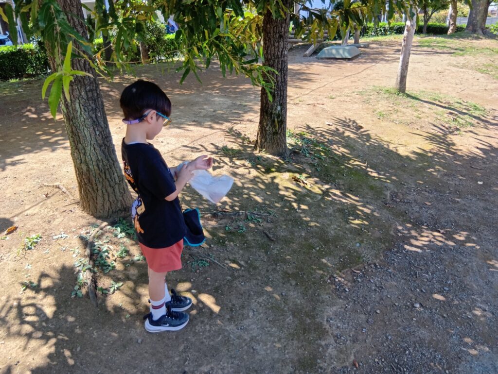 公園に行く途中で彼岸花を見つけ、初めて見るお花の形に驚く子も!