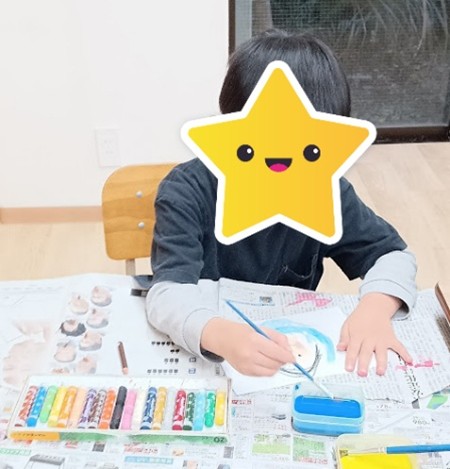 放課後等デイサービスのお友達は、はじき絵の笑顔の実や、空にあったら面白いものをいろいろ想像して絵を描きました!みんなの想像力から生まれるとっても素敵な作品がたくさん出来上がりました☆