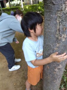 ●大きい木を見つけたね!触るとどんな感じかな・・・?●