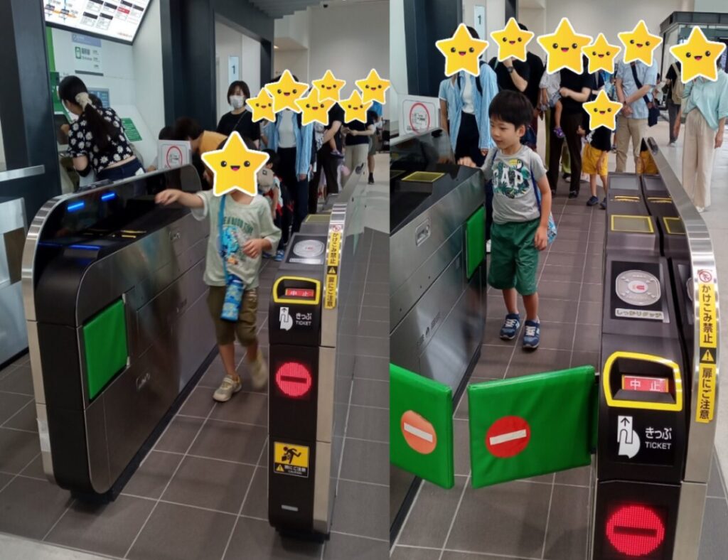先生と一緒に切符を買った後、一人ずつ改札機に通すことができました。