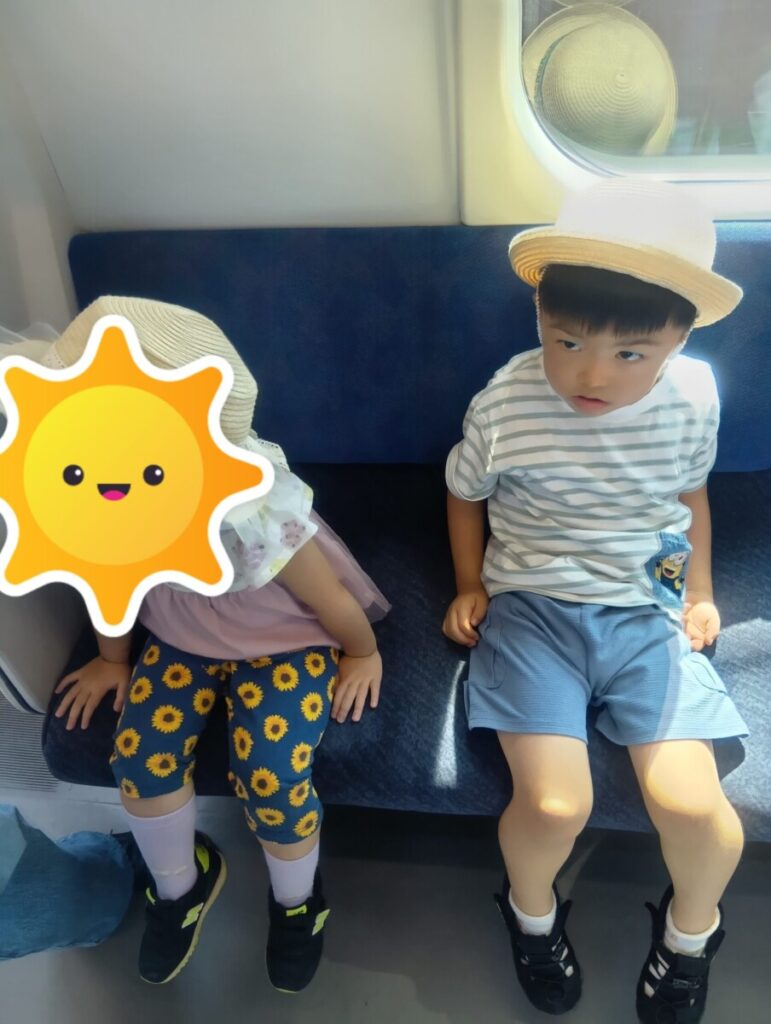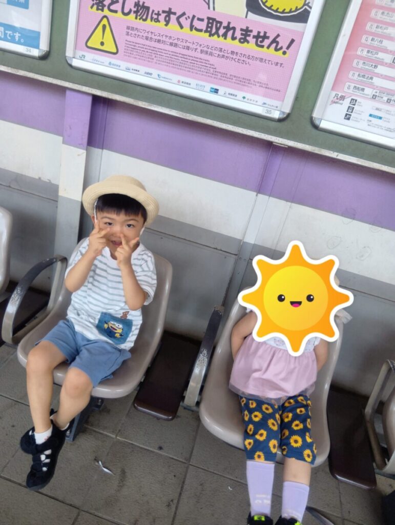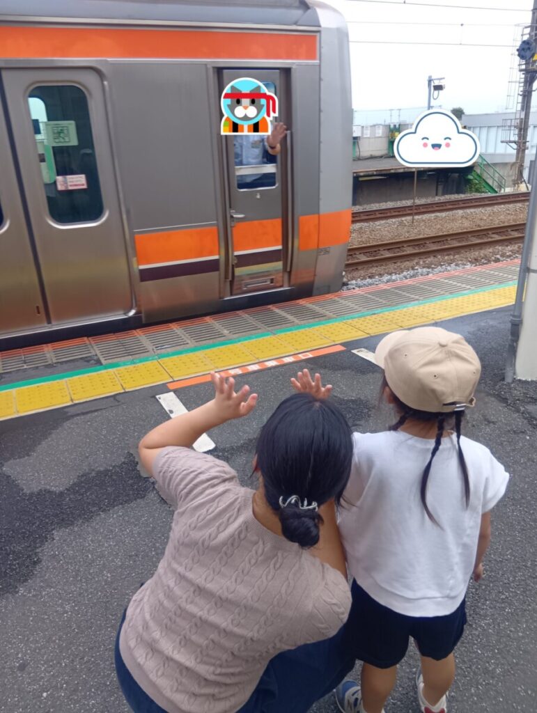 電車に「バイバーイ」と手を振ったところ車掌さんも手を振り返してくれたようで、子どもたちはとても嬉しかったようです😊