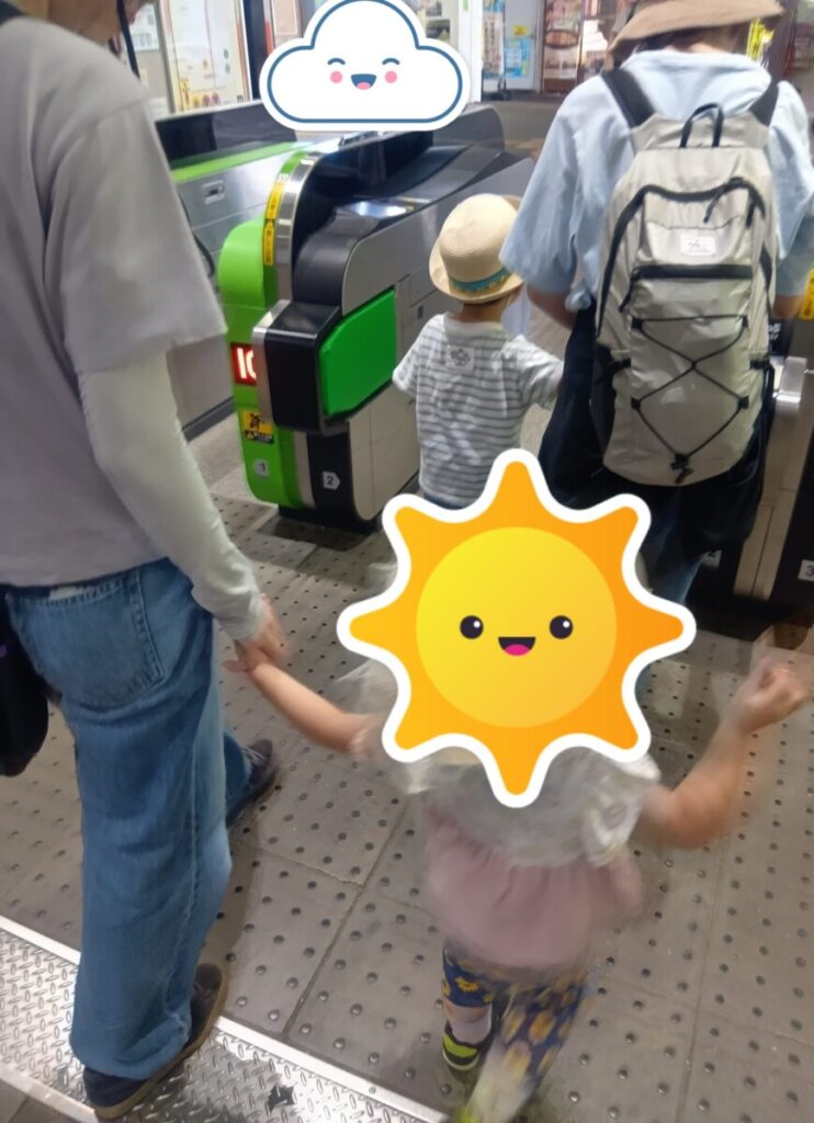 子どもたちも少し緊張気味で改札を通り、切符を入れることができました😳