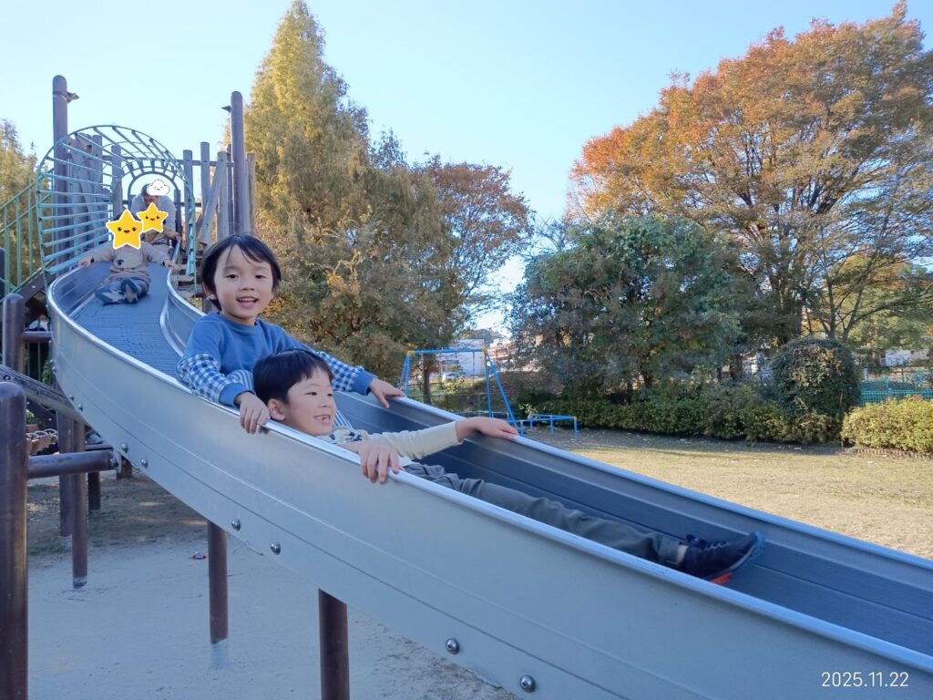 長い滑り台にみんな大喜び!公共のルールを守って楽しむことができました。
