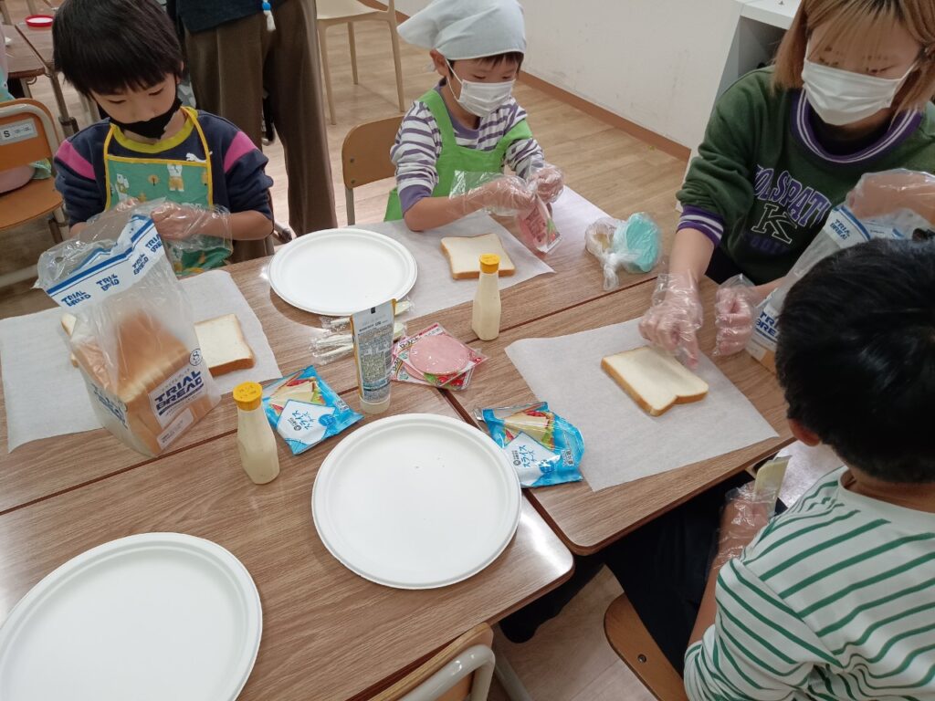 先生のお話をしっかり聞いてサンドイッチ作り開始!