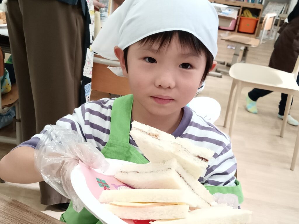 先生と一緒にパンを切ると一気にサンドイッチらしくなりました☆